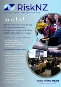 As the leading risk management non-profit sector and professional body in New Zealand, RiskNZ provides opportunities for members to develop skills and capability in risk management and to stay ahead of current issues. RiskNZ Membership connects you with others committed to best practices in risk management.